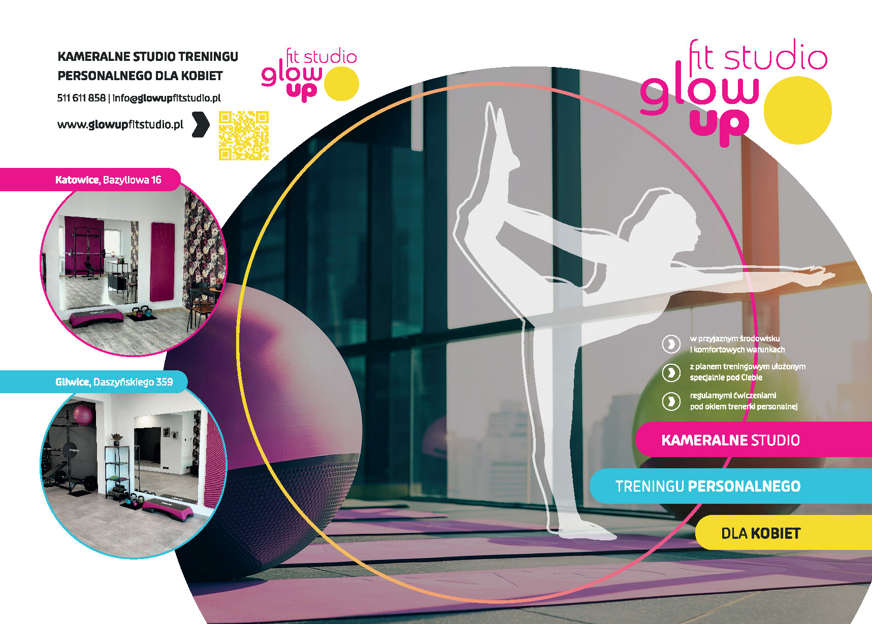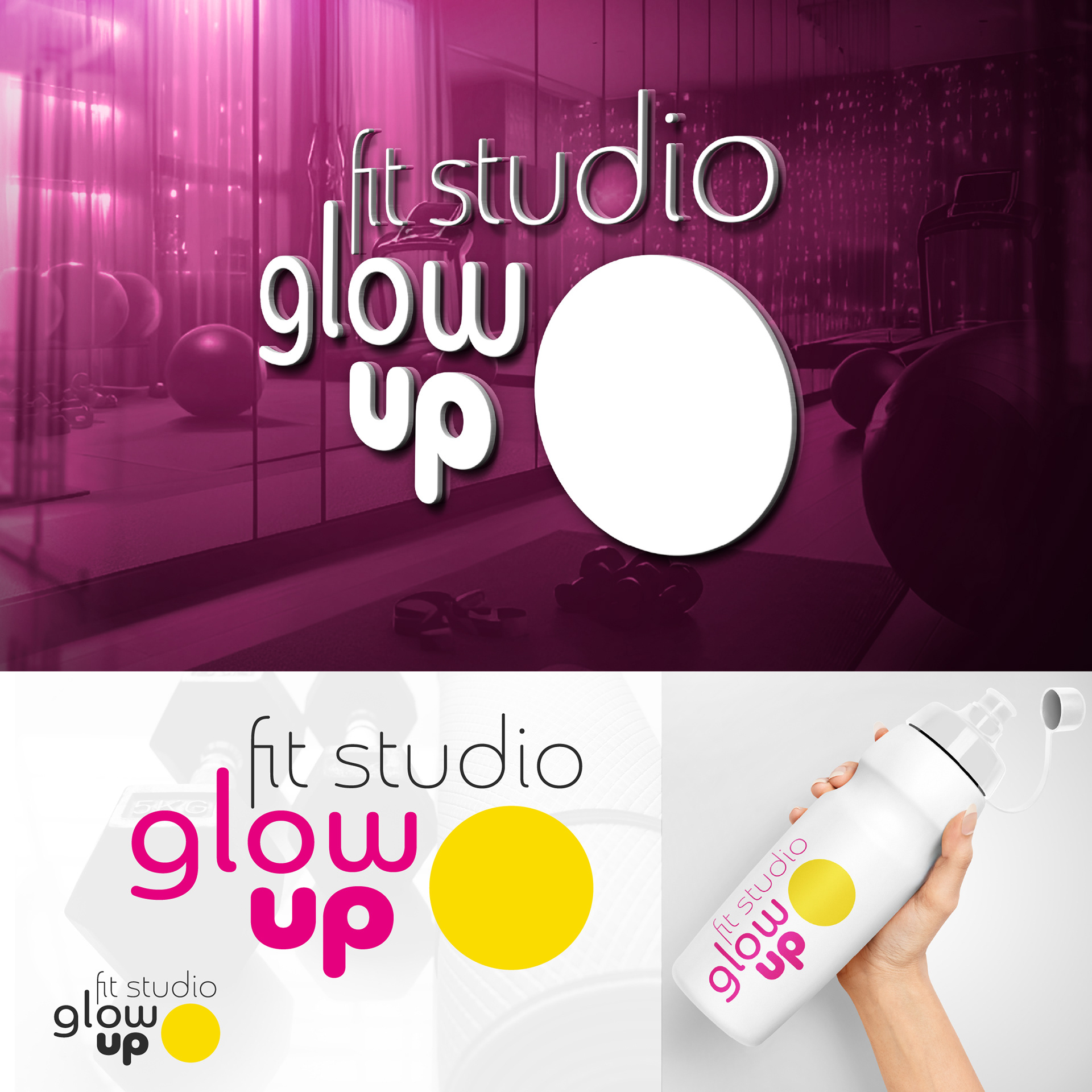 The purpose was to create a visual identity for a women's fitness studio that displays energy and welcoming while remaining consistent and functional in a physical space.